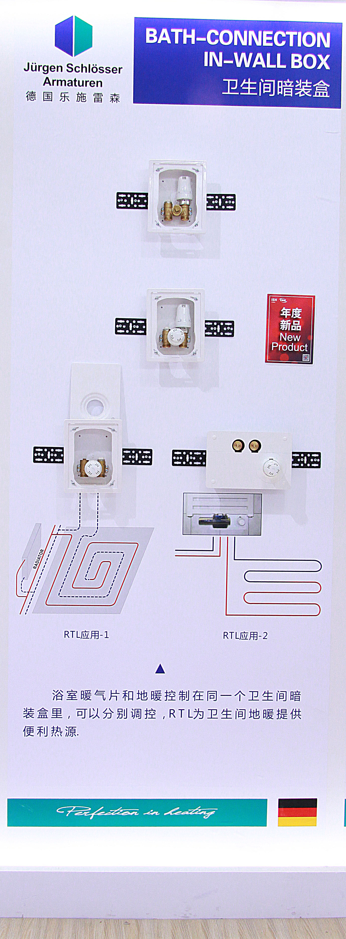 我们的新产品----暗装盒,为暖气片与地暖混装提供解决方案。有根总裁呼吁中国同行,适当降低暖气片的供水温度。